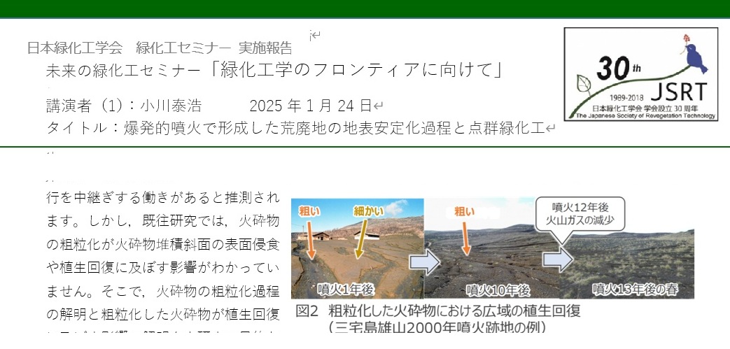 | 2025年1月24日 小川泰浩さん + 阿部建太さん 「緑化工学のフロンティアに向けて」(画像からファイルへリンクしています) |