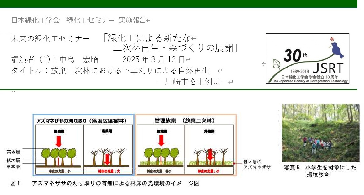 | 2025年3月12日 中島宏昭さん + 西野文貴さん 「緑化工による新たな二次林再生・森づくりの展開」(画像からファイルへリンクしています) |